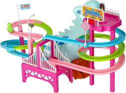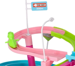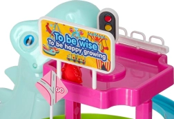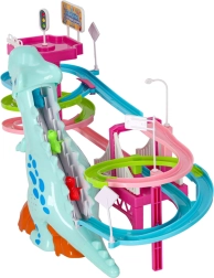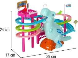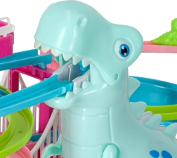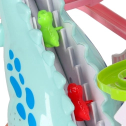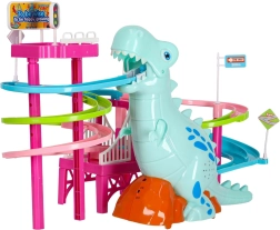 Piste de course dinosaures avec toboggan, escalier mobile, LED et son