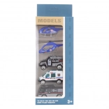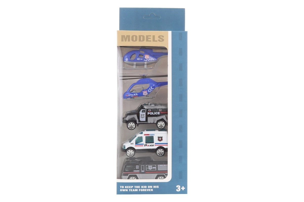 Découvrez un divertissement plein d’action avec le set de voitures de police en métal, comprenant 2 hélicoptères et 3 voitures. Idéal pour les jeunes fans des services de secours à partir de 3 ans. L’emballage compact de 10 × 27 × 3,5 cm est parfait pour les voyages ou comme cadeau.