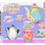 - 4 tasses avec sous-tasses, théière, pot à lait, sucrier, 6 couleurs, pinceau