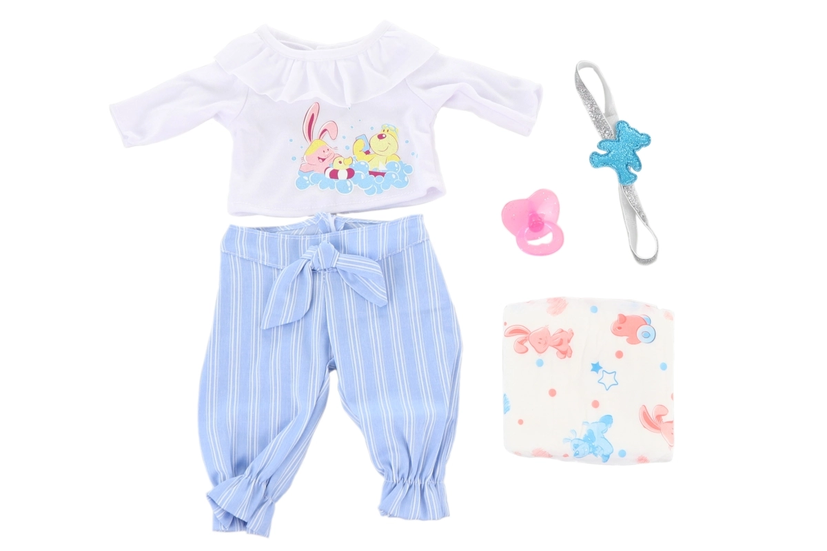 Des vêtements stylés pour poupée de 45 cm, idéals pour le jeu quotidien comme pour les occasions spéciales. Ils aident à développer l’imagination des enfants, la motricité fine et le soin apporté à la poupée. Finition de qualité et enfilage facile pour garantir le plaisir de jouer à chaque fois.