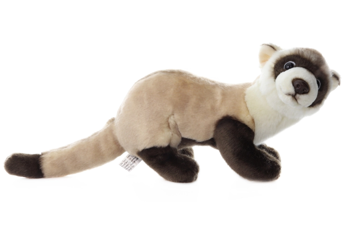 Furet en peluche d’environ 23 x 8 x 14 cm (sans la queue). Longueur de la queue env. 14 cm. Âge 0+