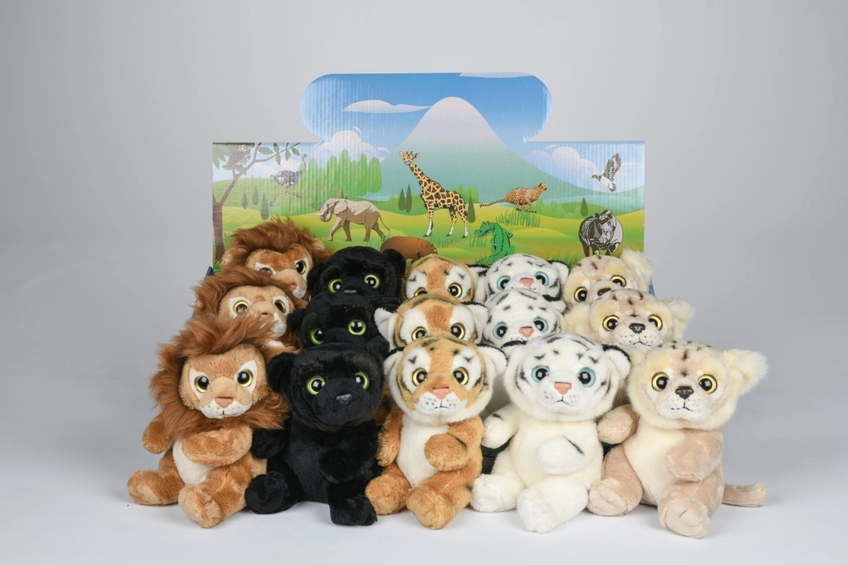 Découvrez la collection de félins en peluche au format compact de 15 cm – petit lion, tigre, tigre blanc ou adorable chaton. Chaque pièce est réalisée en peluche douce et agréable et ornée d’un piquage précis pour une utilisation sûre et durable. Grâce au rembourrage léger, elle est parfaite pour les câlins et procure aux enfants une sensation apaisante de sécurité.