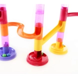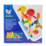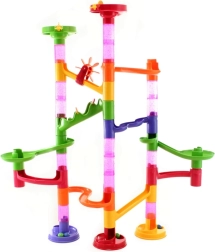 La boîte de construction du circuit à billes propose des tuyaux, virages et toboggans variés qui s’emboîtent facilement pour créer des pistes originales. Grâce aux 45 pièces, assemblez des structures basses ou à plusieurs niveaux et vivez chaque fois une course différente.
