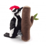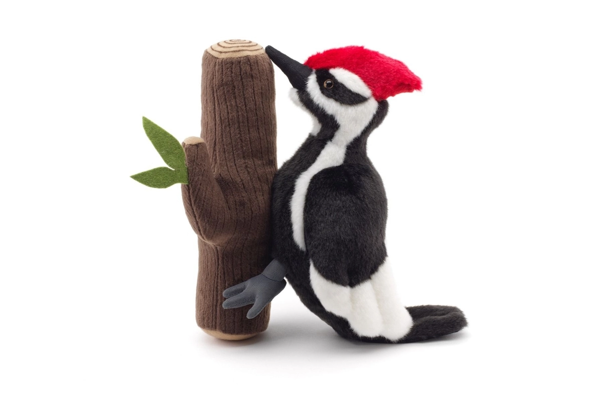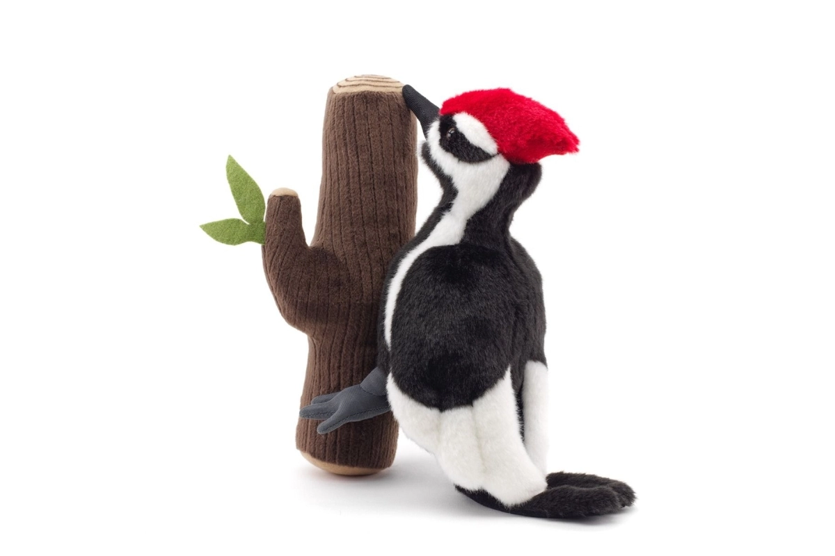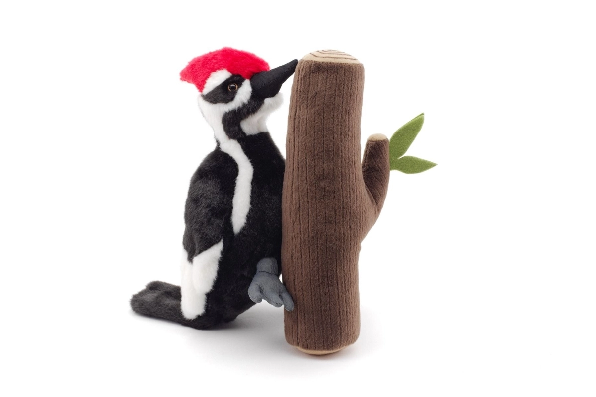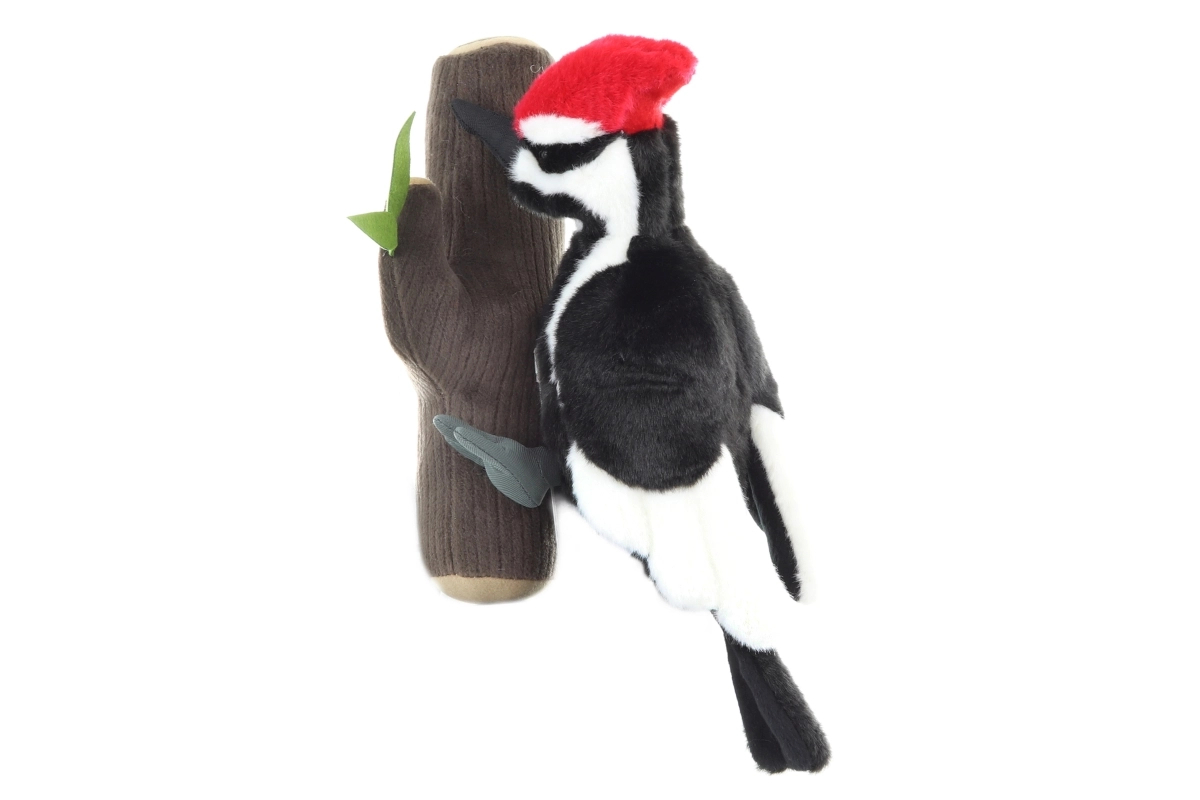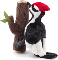 Ce pivert en peluche, avec sa huppe rouge caractéristique et son plumage noir et blanc contrasté, est fixé à un « arbre » doux avec des feuilles, pour un rendu des plus réalistes. Grâce à sa peluche moelleuse, il est idéal pour les câlins, la décoration de la chambre d’enfant et les jeux imaginatifs.