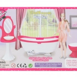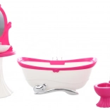 Salle de bain Glorie est l'accessoire idéal pour chaque maison de poupées. Comprend une coiffeuse élégante avec lavabo, une baignoire et des toilettes, le tout fabriqué en plastique de qualité.