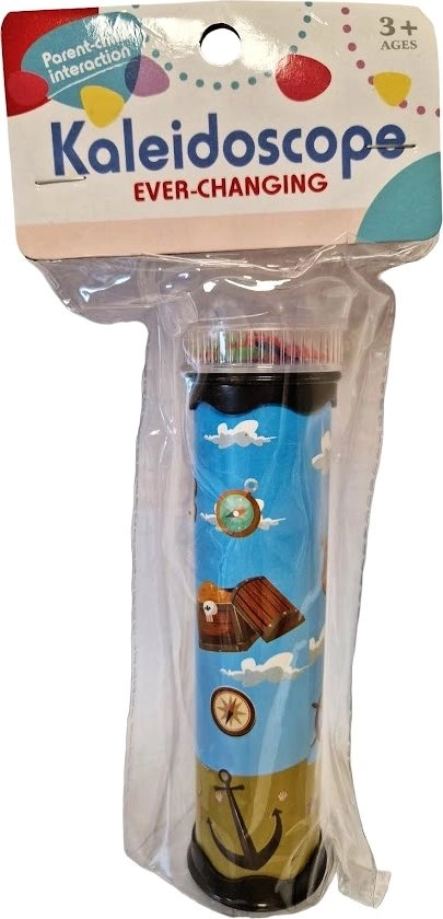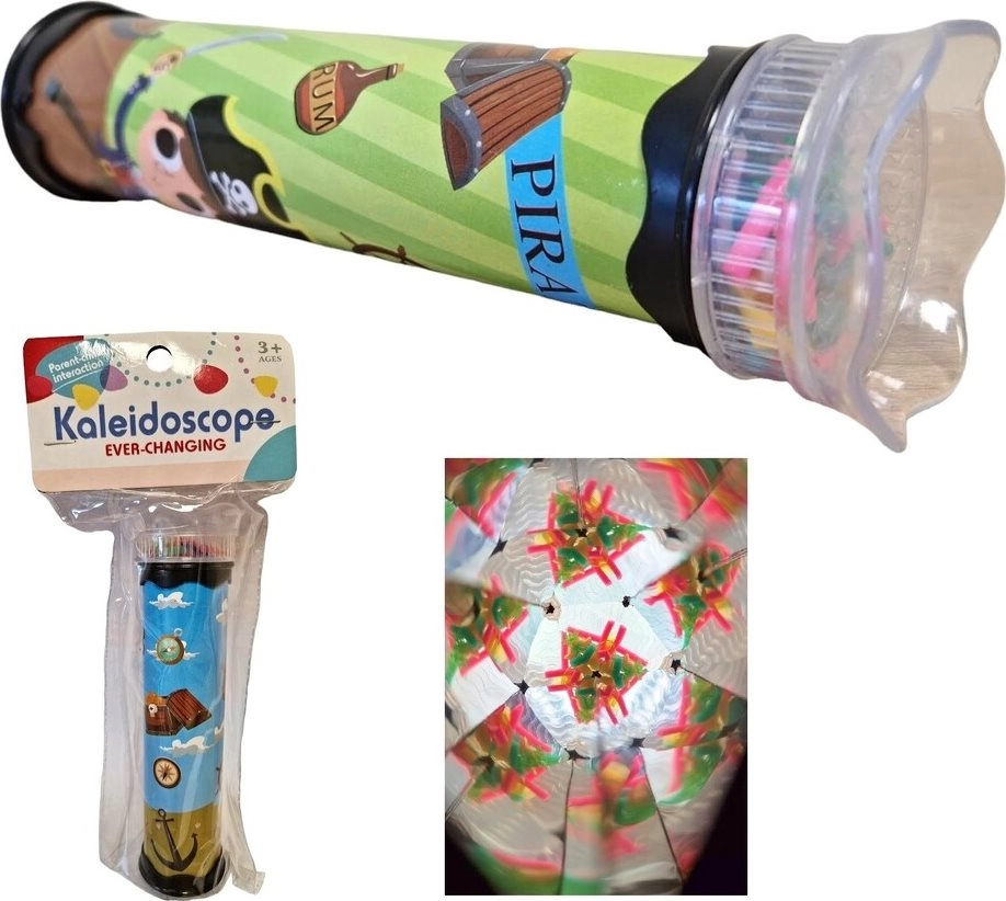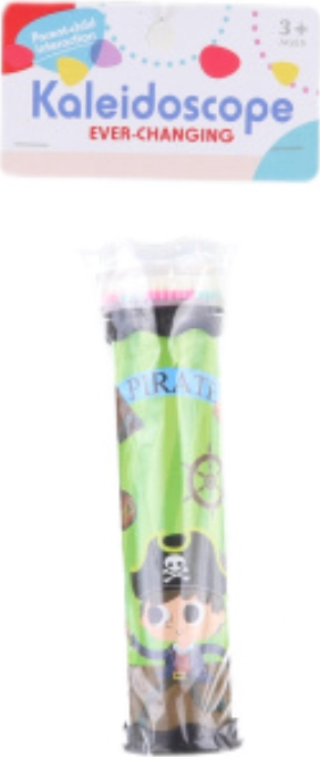 Kaléidoscope coloré pour enfants avec illustration de pirate. Dimensions du kaléidoscope : environ 17 x 5 cm. Dimensions de l’emballage : environ 10,5 x 24 x 5 cm. Âge 3+.
