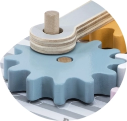 Les enfants peuvent entraîner leur coordination et leur logique grâce à des engrenages ludiques qui mettent les autres en mouvement.