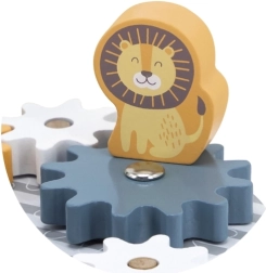 Encouragez le jeu et le développement avec nos blocs en bois à engrenages, où la mécanique devient un jeu. Le set comprend 7 pièces d’engrenages colorées, 3 figurines d’animaux amusantes et une base sur laquelle vous pouvez placer les roues dentées afin que l’une mette les autres en mouvement.