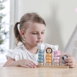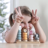 Les motifs animaux et les anneaux numérotés encouragent l'apprentissage des chiffres et des couleurs de manière ludique.
