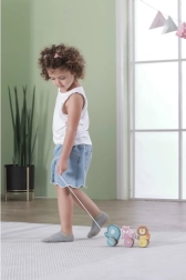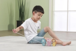 Le jouet est fabriqué en bois laqué résistant et peint avec des peintures non toxiques sûres pour les enfants. Les bords lisses et la taille agréable sont idéaux pour les petites mains. En jouant seul ou à plusieurs, les enfants entraînent leur créativité, leur motricité fine et leur imagination.