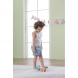 Bois laqué de haute qualité et peintures non toxiques dans des tons pastels, respectueux des enfants et de l’environnement.
