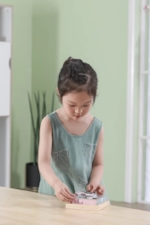 Chaque face du cube appartient à un motif différent. Les enfants s’amusent à assembler un ours, un koala, un renard, un hérisson, un zèbre et d’autres animaux tout en exerçant leur raisonnement logique.
