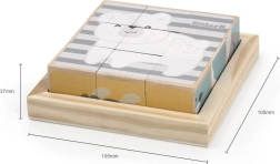 Découvrez un jouet en bois intemporel qui divertit et instruit à la fois. Avec 9 cubes, créez au total 6 motifs d’animaux différents – par exemple un ours, un renard, un koala, un zèbre ou un hérisson. Chaque face de cube correspond à une image différente, ce qui permet aux enfants d’exercer leur attention, leur patience et leur représentation spatiale.