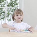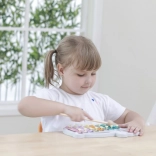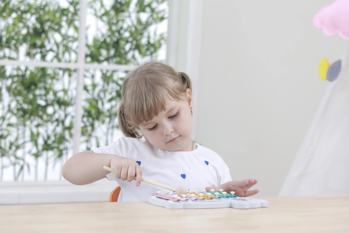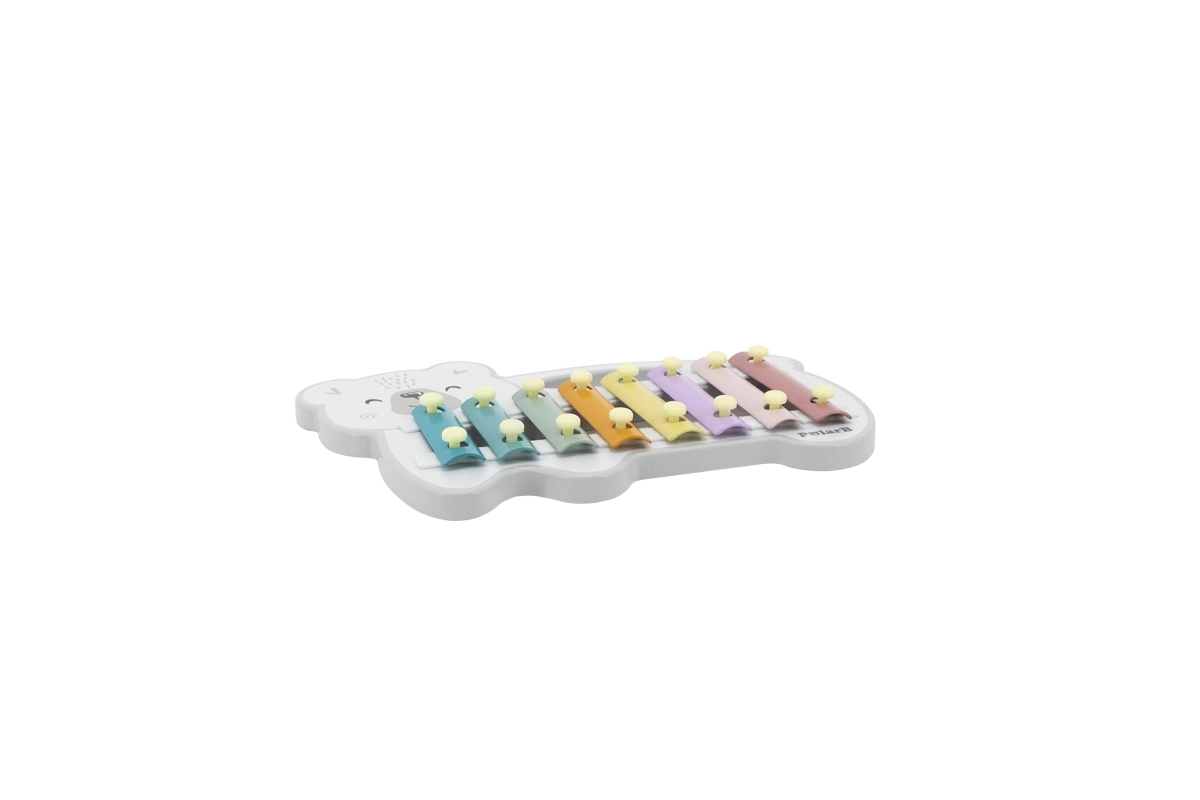 Huit lames pastel encouragent les enfants à explorer les sons, le rythme et de simples mélodies. Parfait pour développer la perception auditive et la créativité.