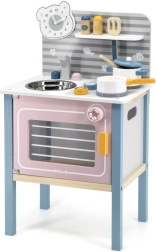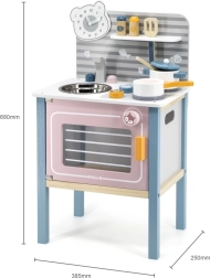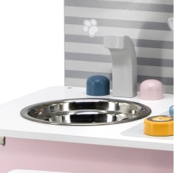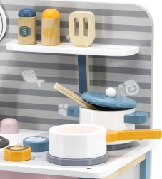 Dotée d’un design de premier ordre, la cuisine comprend une plaque de cuisson, un four et un évier, créant un espace idéal pour le jeu imaginatif. Des détails comme des crochets suspendus et des étagères pour les ustensiles ajoutent à l’authenticité du jeu.