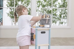 La cuisine est conçue pour un jeu en toute sécurité à partir de trois ans, favorisant le développement de la motricité fine et le jeu d’imitation.