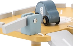 Le garage en bois offre de nombreuses possibilités de jeu interactif grâce à des fonctions intégrées telles que la station de lavage, la station-service et l’ascenseur.