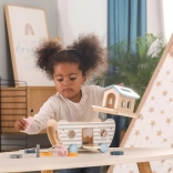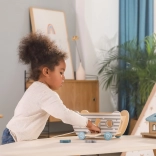 Bois de qualité, bords arrondis et couleurs douces garantissent un jeu sûr même pour les plus petits. Idéal pour la chambre d’enfant et en déplacement.