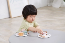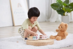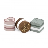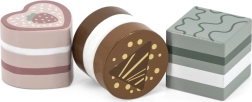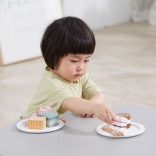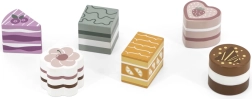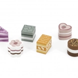 Ce set comprend six jolis desserts en bois de formes et de couleurs variées – parts de gâteau, rond, cœur ou barre. Les enfants peuvent jouer à la pâtisserie, servir leur ours en peluche ou organiser un goûter. Chaque pièce tient bien en main et invite à y jouer encore et encore.