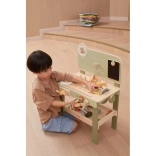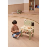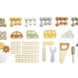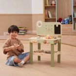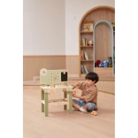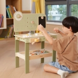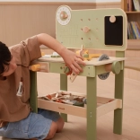 Établi pour enfants au style naturel-vert offrant une expérience d’atelier réaliste dans une version en bois sûre. Les enfants peuvent visser, changer les roues de la petite voiture, « scier » des pièces, assembler des engrenages et découvrir les principes de cause à effet. Grâce à l’espace de rangement bien pensé, toutes les pièces et les outils restent toujours à portée de main.