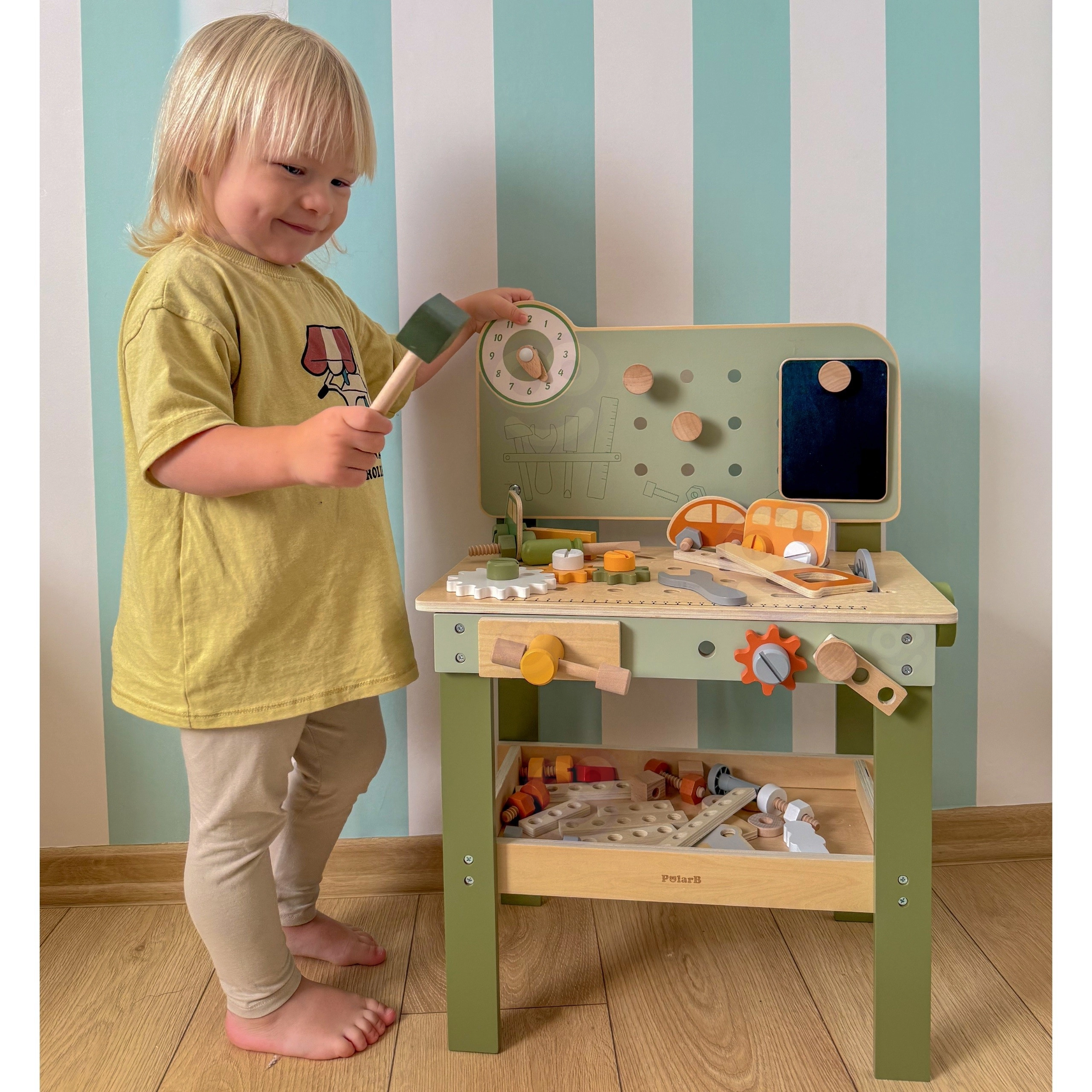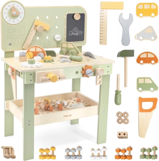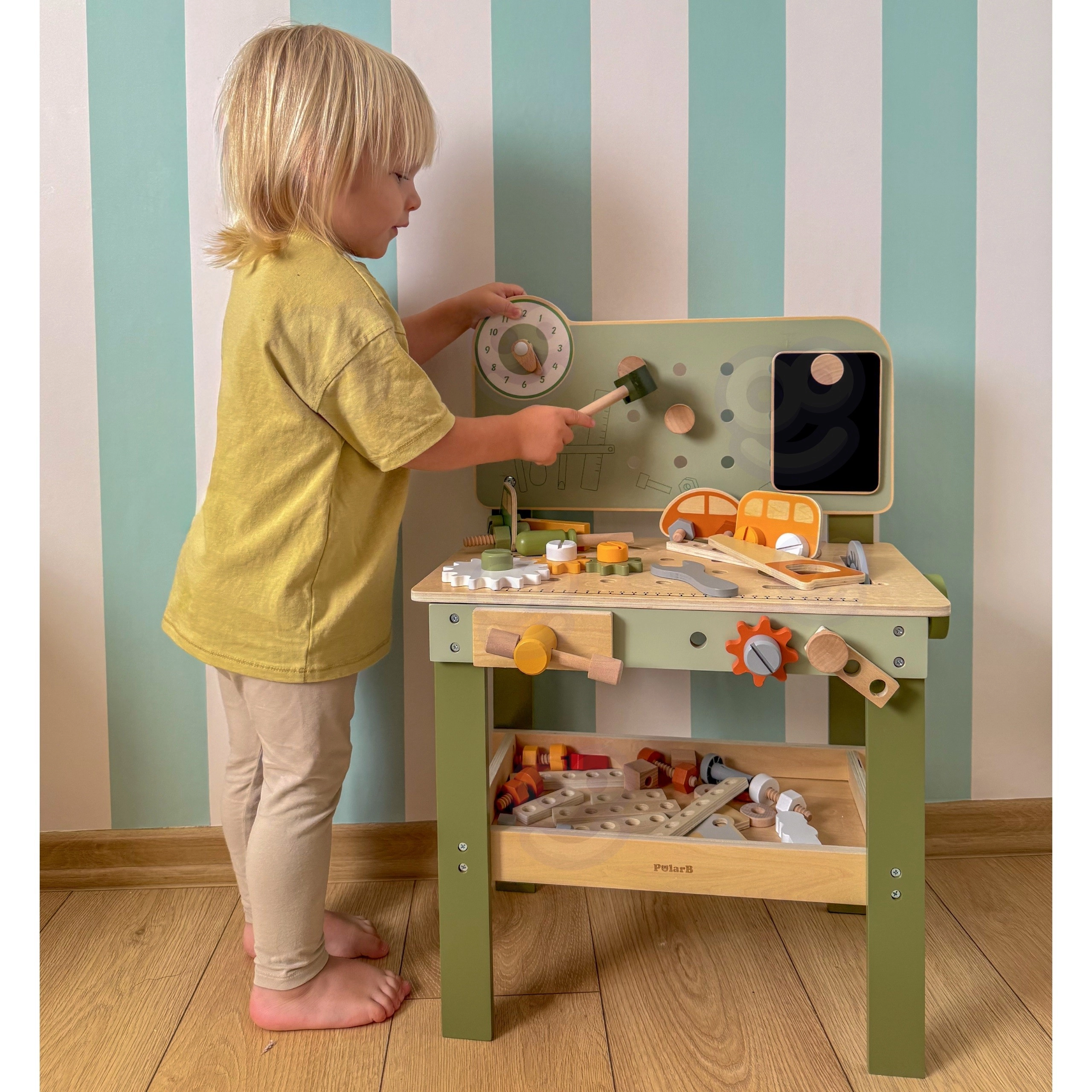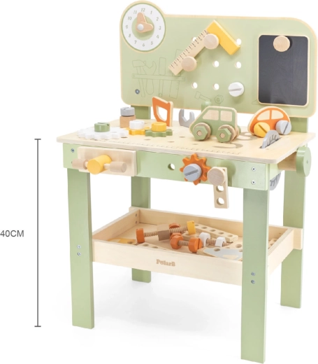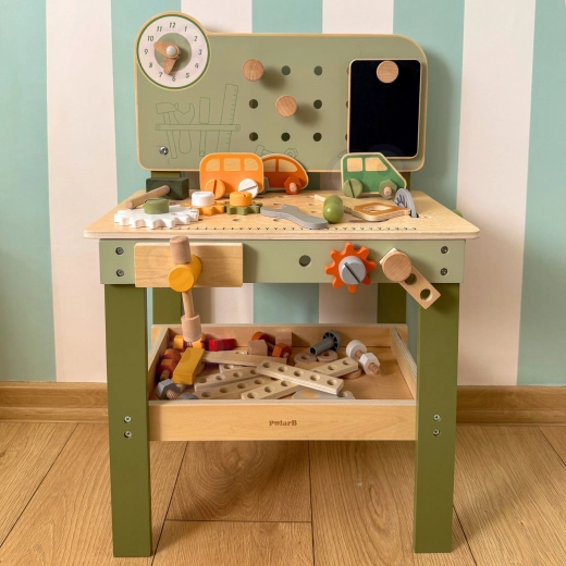 Découvrez l’établi Viga PolarB, robuste et stylé, conçu pour les petits bricoleurs dès 3 ans. Grâce à sa structure en bois, à ses engrenages qui tournent en douceur et à son large éventail d’accessoires, les enfants entraînent la coordination œil‑main et apprennent à résoudre des tâches en jouant. Des matériaux sûrs et des détails bien pensés assurent une longue durée de vie et un rangement pratique des composants.