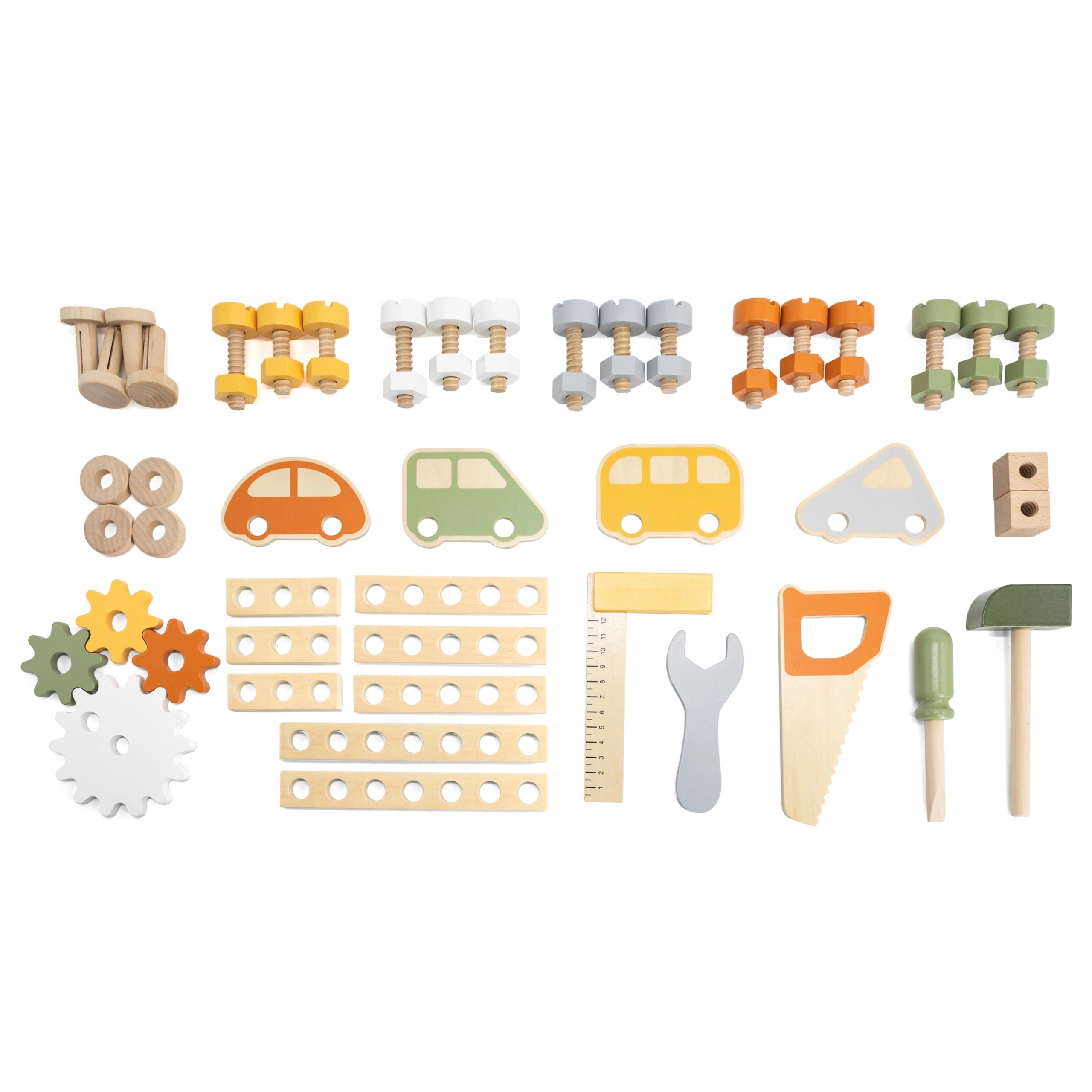 Vis, écrous, lattes, engrenages et outils offrent aux enfants la liberté de construire, combiner et expérimenter des principes mécaniques.