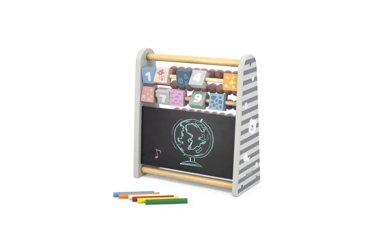 Découvrez un jouet malin pour les premières mathématiques : un abacus en bois 3‑en‑1 avec des perles colorées, des cubes basculants avec chiffres et une petite ardoise à craie. Il développe le calcul, la reconnaissance des chiffres et la créativité grâce au dessin. Format compact de table, construction en bois stable et couleurs pastel attrayantes en font un choix idéal pour les enfants dès 3 ans.