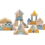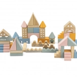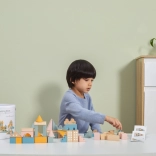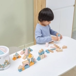 Ce jeu de construction en bois de qualité, présenté dans un seau, offre 50 pièces soigneusement travaillées aux agréables couleurs pastel. Les enfants construisent des petites maisons, des tours et toute une ville tout en développant la coordination, la pensée logique et la créativité.