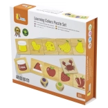 Jeu éducatif en bois grâce auquel les enfants apprennent à différencier les couleurs et à les associer correctement aux images. Les enfants ne se contentent pas d’identifier les couleurs, ils acquièrent aussi des connaissances sur les objets, les plantes ou les animaux associés à ces couleurs, renforçant leur compréhension du monde qui les entoure.