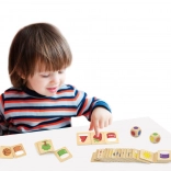 Jeu en bois ludique et éducatif pour les enfants dès trois ans, qui aide à apprendre à reconnaître et à nommer les couleurs et les formes par le jeu et l’interaction.