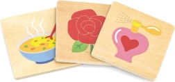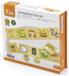 Le jeu éducatif VIGA puzzle en bois offre un moyen idéal pour que les enfants développent leur réflexion et leur coordination. La tâche consiste à associer des objets aux sens choisis, ce qui inclut divers objets du quotidien.