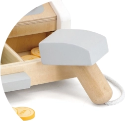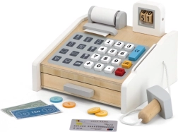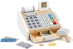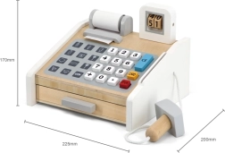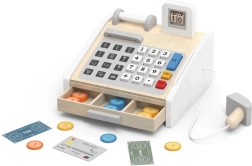 Caisse enregistreuse en bois est un excellent jouet qui permet aux enfants de jouer à des scènes de magasin. Ils peuvent devenir caissiers ou clients, pratiquer les interactions sociales et les compétences en communication. En espèces ou par carte ? Calculez le montant, acceptez l'argent et rendez correctement la monnaie. La caisse contient des billets, des pièces et une carte de paiement.