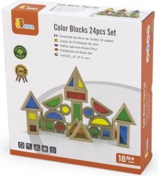 Le set de 24 blocs en bois colorés Viga est conçu pour les enfants dès 18 mois. Ce produit éducatif et ludique favorise la créativité et le développement de la motricité fine chez les tout-petits, tout en étant sûr pour les jeunes enfants.