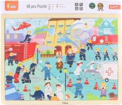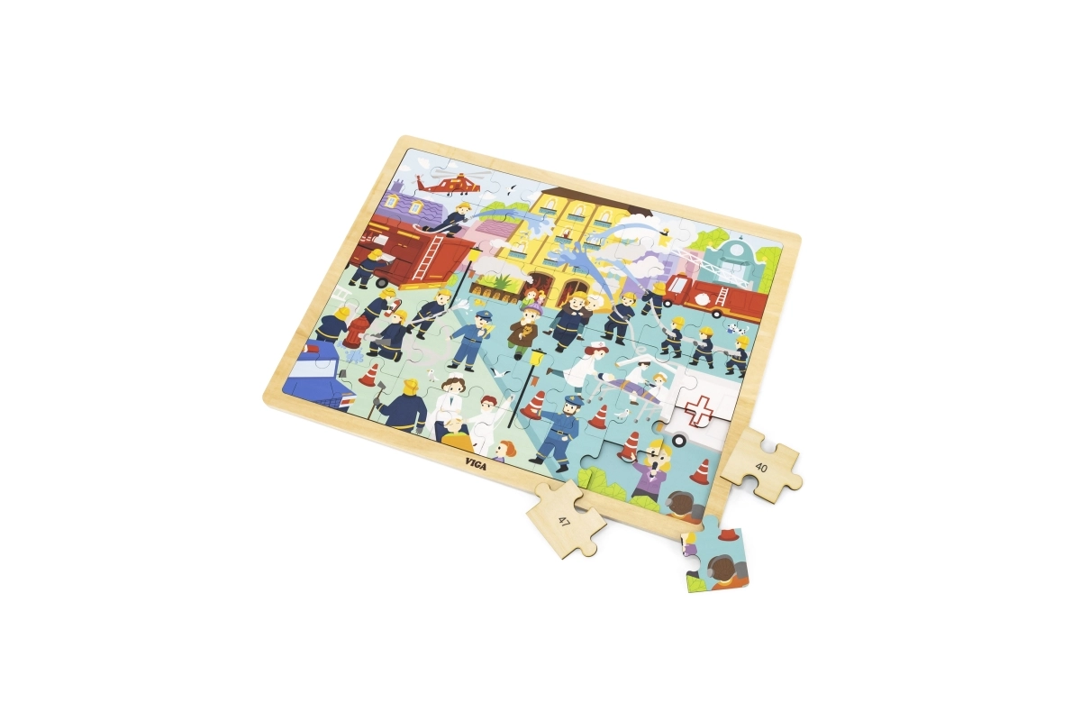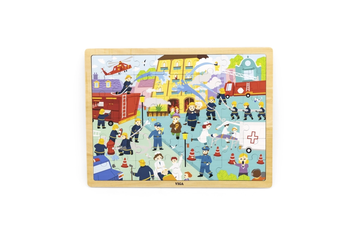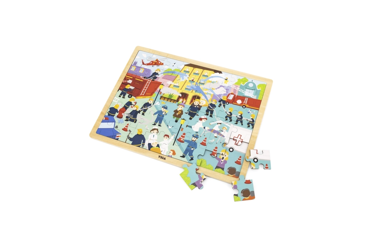 Ce puzzle en bois de qualité, illustré d’une scène de pompiers, est idéal pour les premières expériences d’assemblage et pour développer les compétences des enfants d’âge préscolaire. Les pièces sont solides, agréables en main et s’insèrent dans un plateau en bois stable, ce qui facilite la manipulation et le rangement.