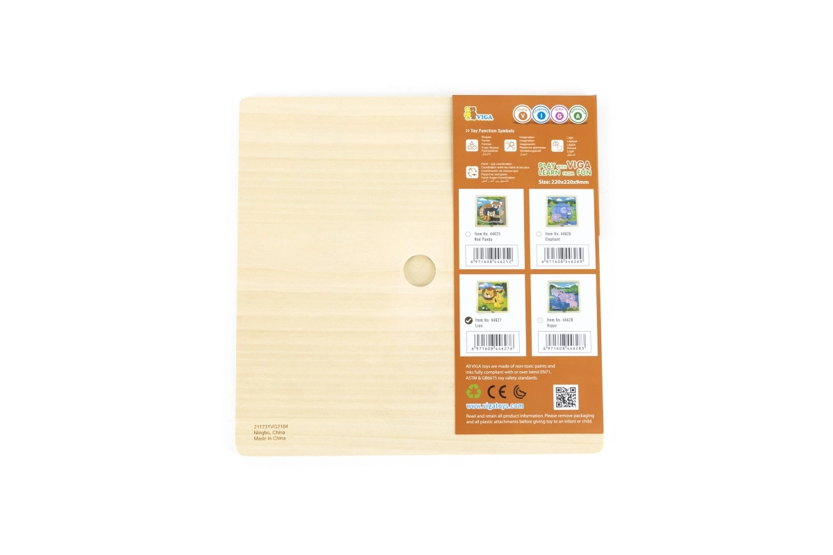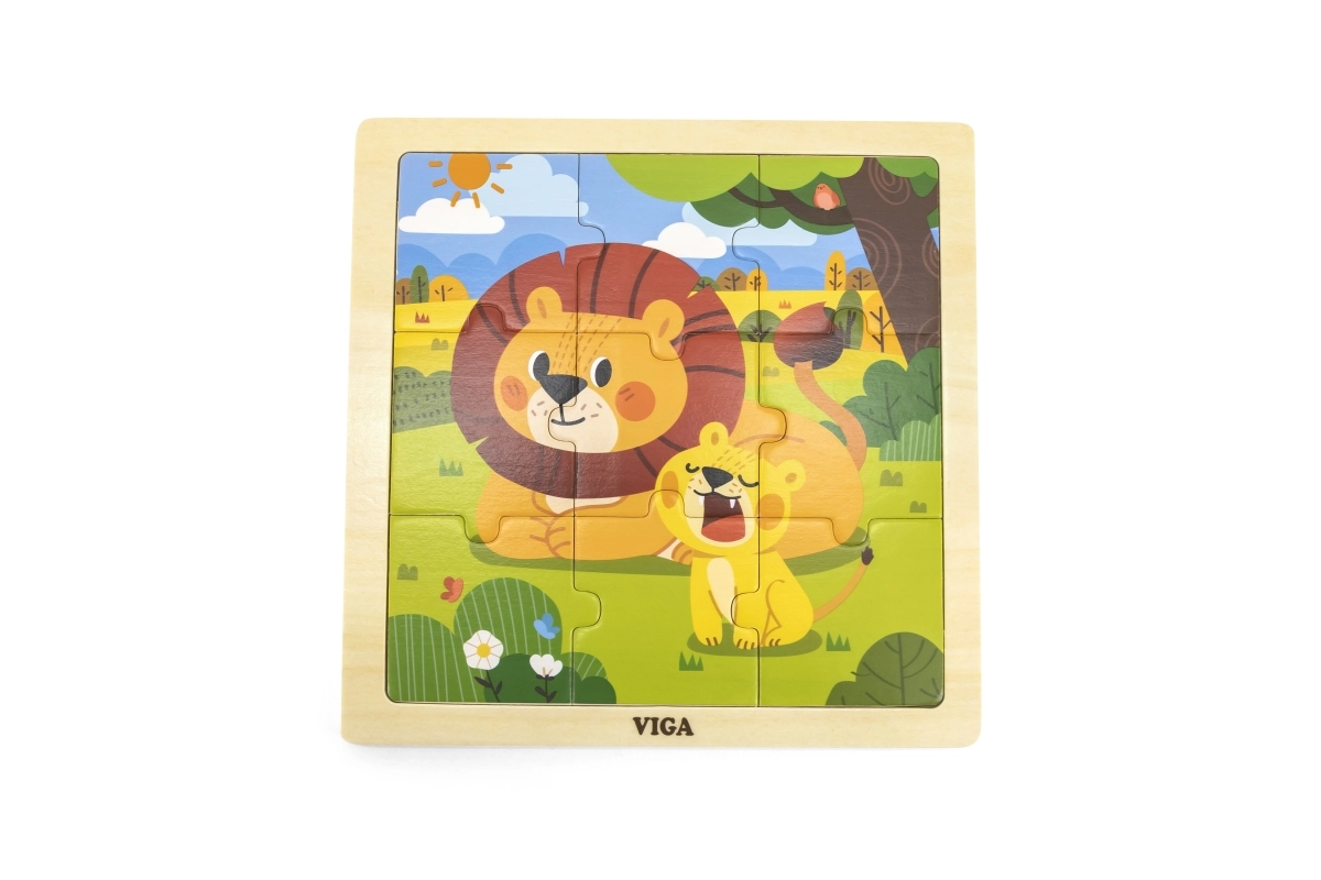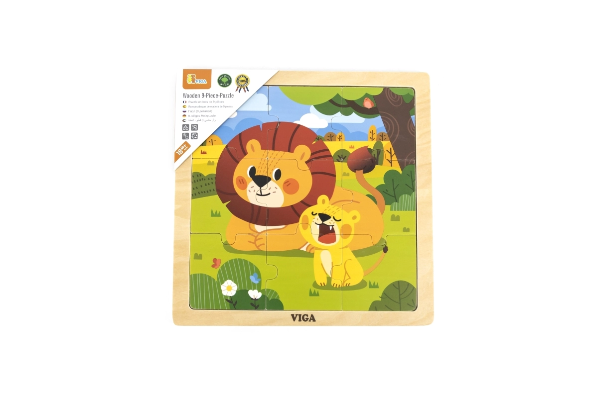 Ce puzzle en bois à motif de lions est idéal pour une première découverte des puzzles. Grâce à ses 9 pièces robustes, les enfants exercent leur motricité fine, leur coordination œil–main et leur raisonnement logique. Les illustrations de lions, aux couleurs attrayantes, éveillent la curiosité et enrichissent le vocabulaire.