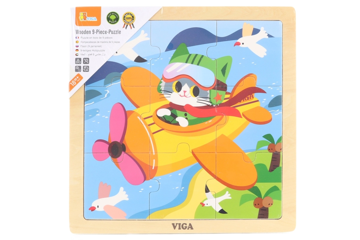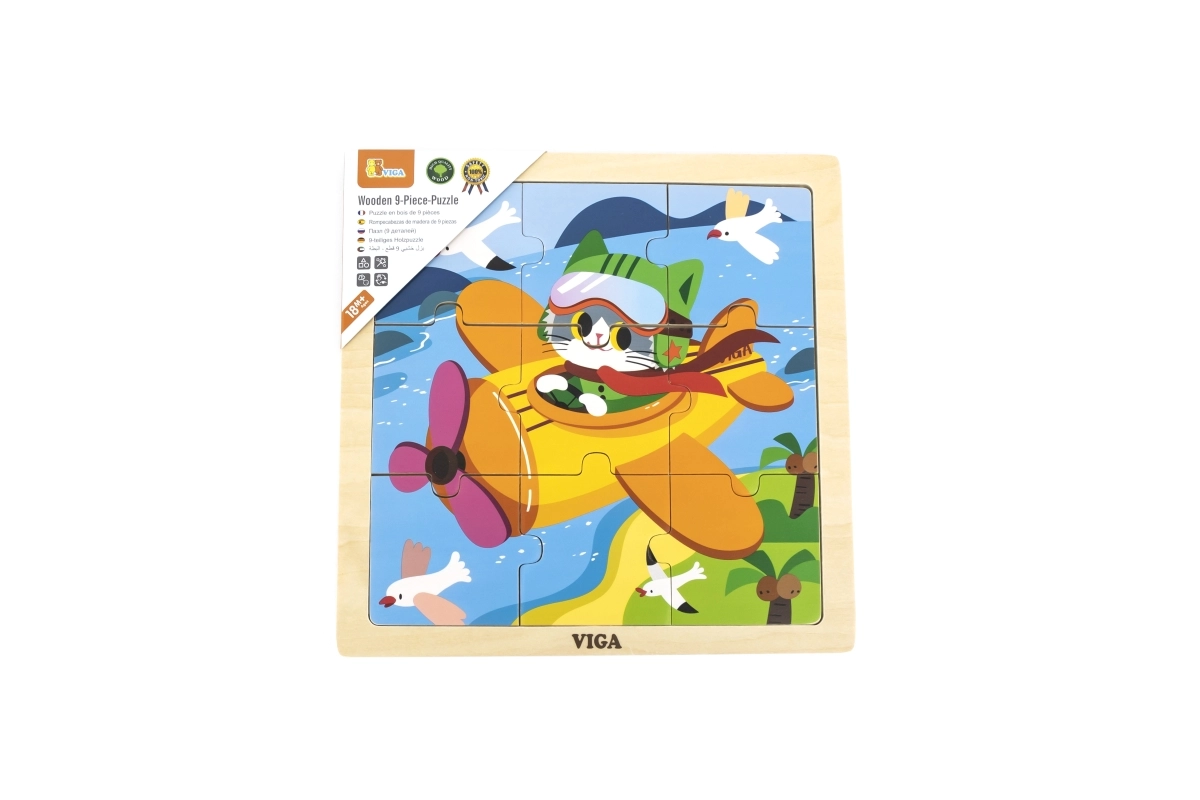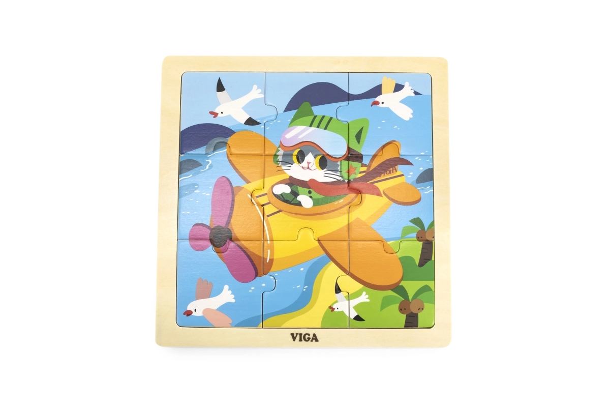 Offrez aux enfants un apprentissage ludique avec ce puzzle en bois représentant un chat pilotant un avion. Neuf pièces robustes et un cadre en bois solide aident les enfants à travailler la précision, la concentration et le plaisir d’assembler. Grâce à ses couleurs vives et à son motif amical, le puzzle encourage le jeu répété.
