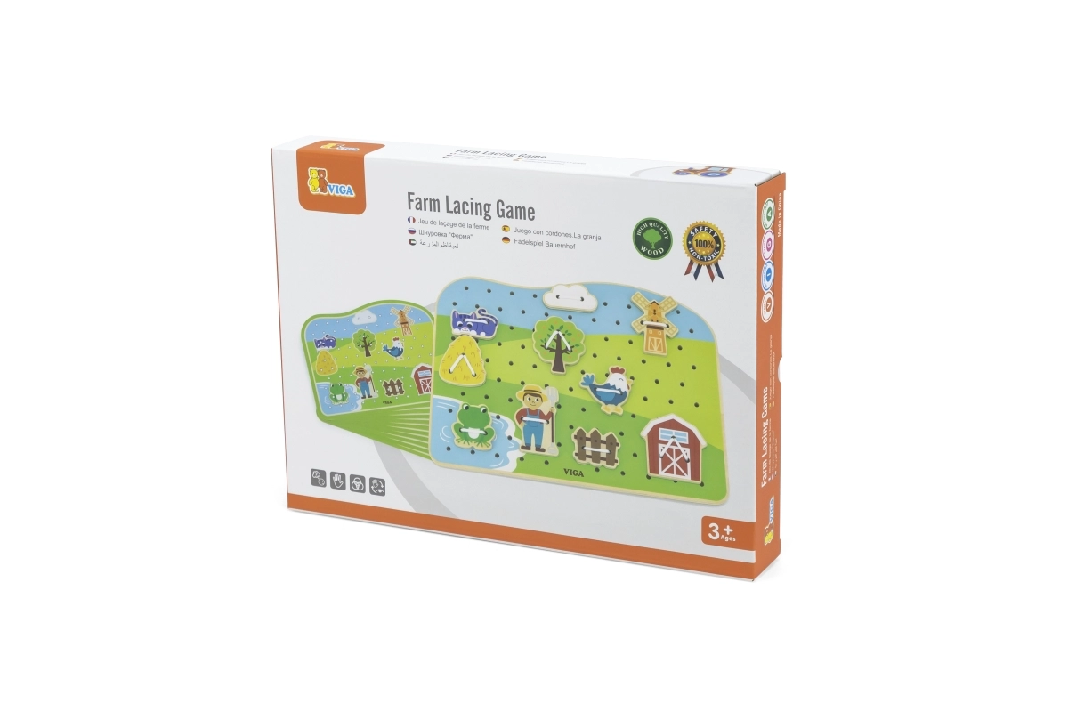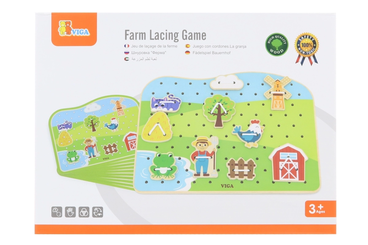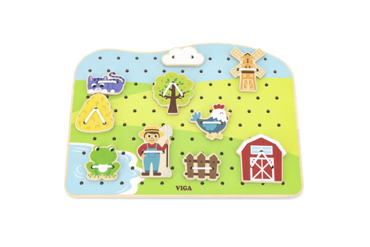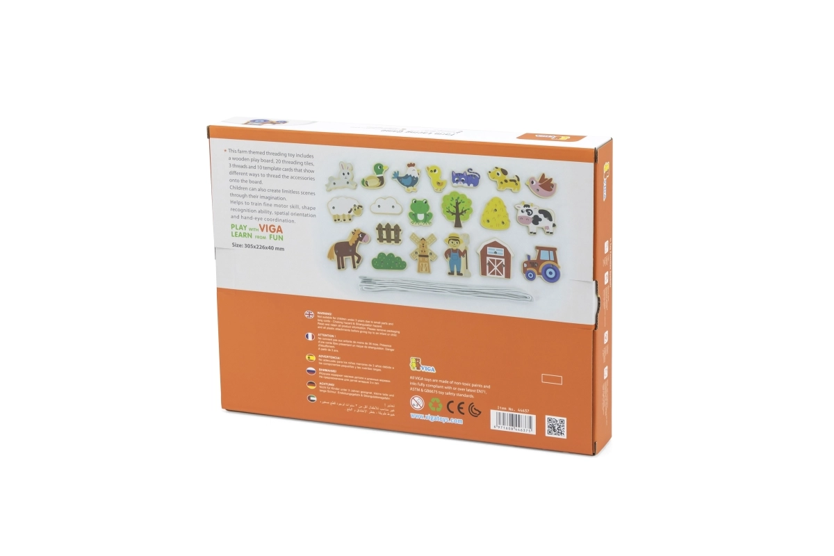 Découvrez un jeu ludique et éducatif pour les tout-petits : un ensemble d’enfilage en bois sur le thème de la ferme de VIGA. En enfilant les cordons, les enfants entraînent leur motricité fine, leur précision et la coordination œil-main. Une fabrication en bois de qualité et des peintures non toxiques garantissent un jeu sûr, plein de créativité et de joie.