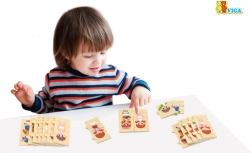 Solides et sûres, les pièces en bois naturel sont agréables au toucher et, grâce aux graphismes colorés, retiennent l’attention des petits explorateurs. Le set est idéal à la maison comme à la maternelle en tant que outil didactique pour le jeu quotidien.