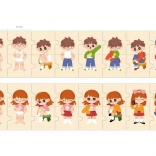 Les pièces séquentielles illustrent les phases d’habillage d’un garçon et d’une fille, permettant aux enfants d’acquérir facilement le bon ordre des activités quotidiennes.