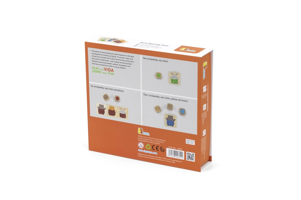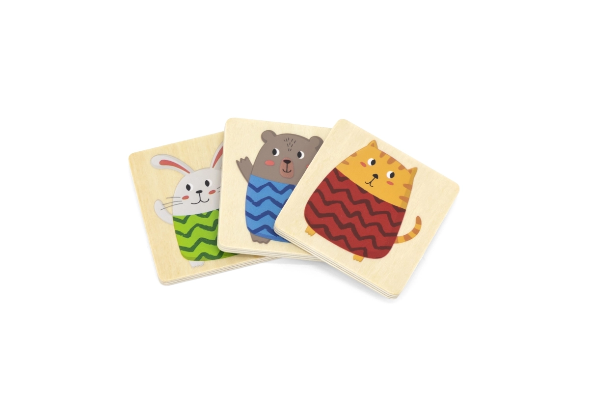 Grâce aux jetons en bois solides et à une finition soignée, le jeu est durable et agréable au toucher. Les motifs colorés d’animaux aident à développer la perception visuelle, la concentration et la motricité fine.