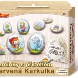 Raconte un conte classique avec le set Galets à histoires – Le Petit Chaperon rouge. Grâce aux autocollants de transfert, les enfants créent leurs propres galets illustrés et développent ainsi l’imagination, les compétences de narration et la motricité fine.