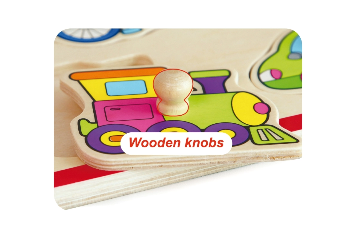 Le puzzle favorise l’enrichissement du vocabulaire, l’apprentissage des couleurs et des formes, tout en aidant les enfants à reconnaître les moyens de transport courants. Les bords lisses et la conception sûre sont idéals pour les petites mains. Un emballage pratique (env. 30 × 27 × 1 cm) facilite le rangement et le transport.