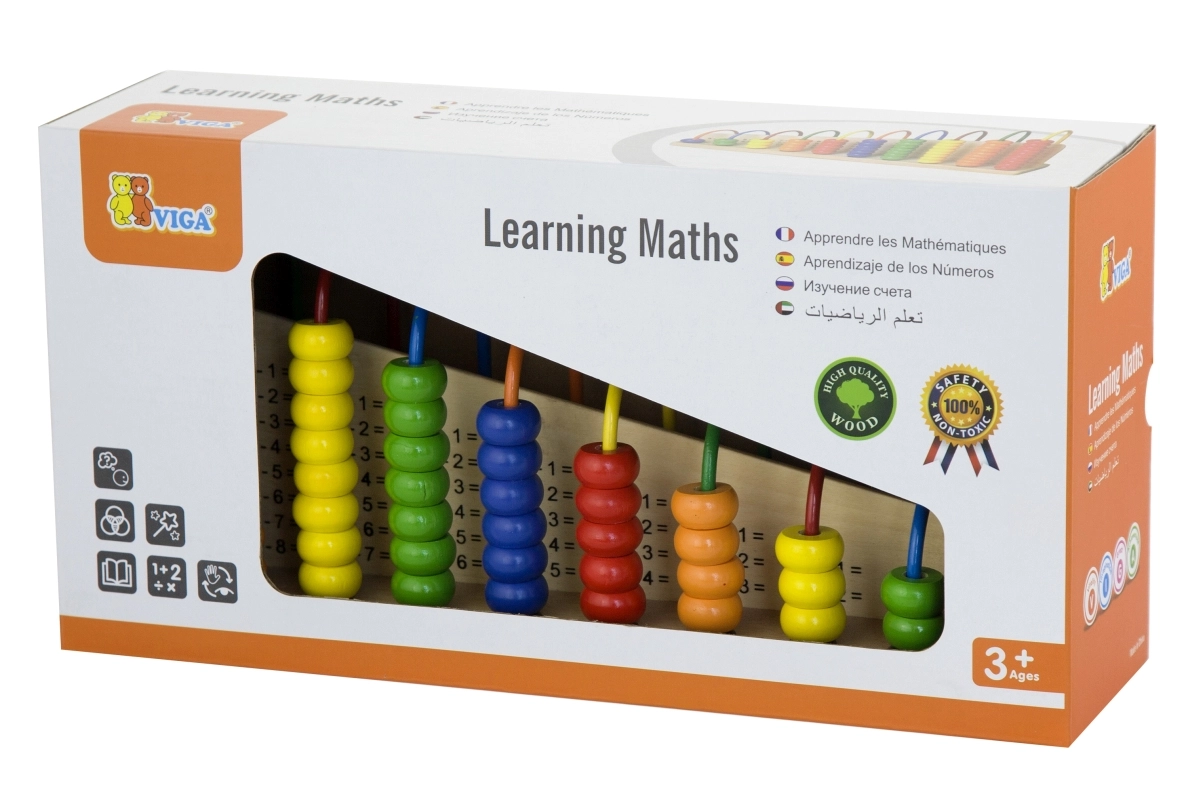 Ce support de calcul compact en bois offre aux enfants la joie de découvrir les nombres et les opérations mathématiques simples. Des exercices sont indiqués sur la planche en bois et l’enfant associe le bon nombre de perles sur les arceaux métalliques. Grâce à un principe intuitif, les enfants apprennent naturellement à reconnaître les chiffres, à compter et à comprendre le lien entre l’exercice et le résultat.
