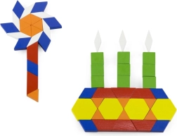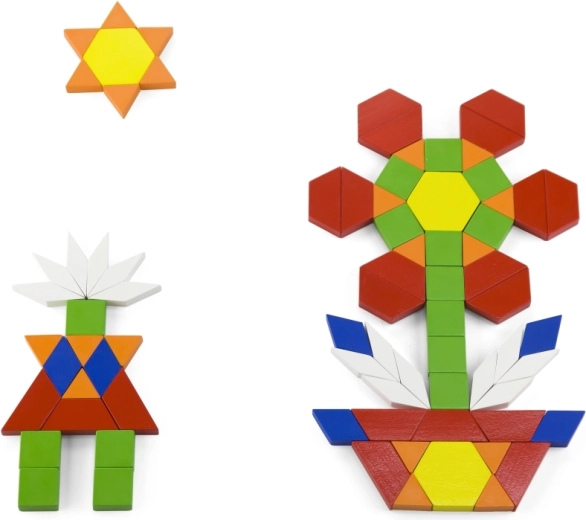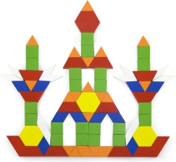 Le grand nombre de blocs plats en bois de différentes formes et couleurs stimule l’imagination et le développement de la représentation spatiale. Les enfants peuvent assembler des motifs, des animaux et même des images complètes.