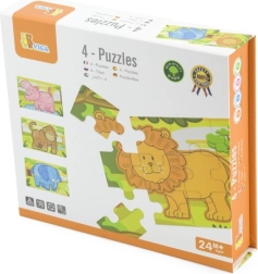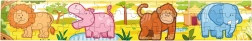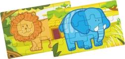 Ce set de puzzles en bois avec de joyeux animaux de la jungle fera plaisir à chaque enfant. Chaque motif présente des couleurs vives et des formes simples qui facilitent l’assemblage et développent naturellement l’imagination. Les pièces permettent de créer quatre images séparées ou une longue scène panoramique réunissant tous les animaux.