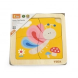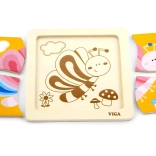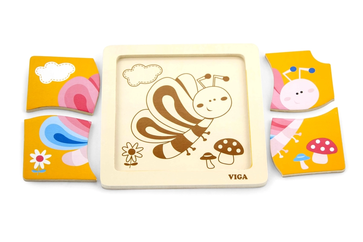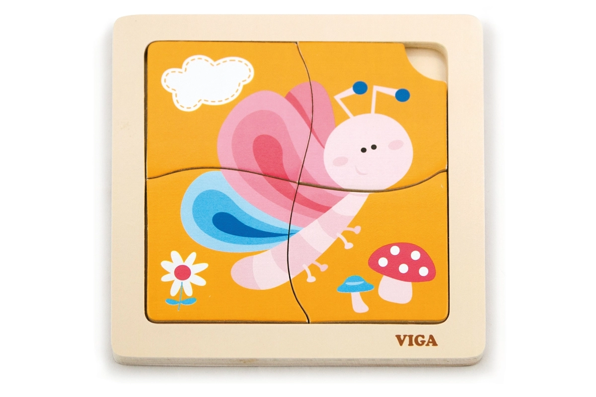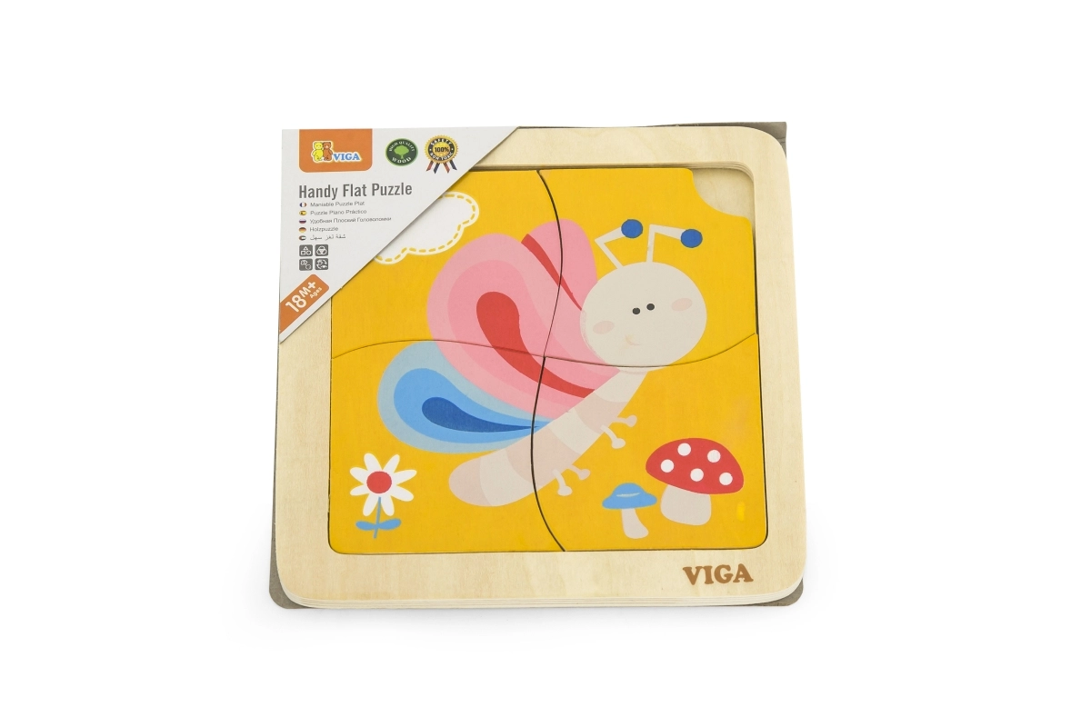Ce joli puzzle en bois avec un papillon coloré est un excellent choix pour une première découverte des puzzles. Quatre pièces robustes tiennent bien dans les petites mains et se placent dans un plateau en bois solide avec modèle. Une pièce comporte un trou pratique pour un retrait facile, afin que les enfants apprennent rapidement à manipuler et à recomposer les pièces.