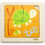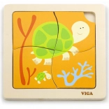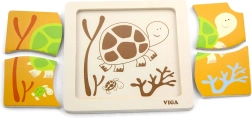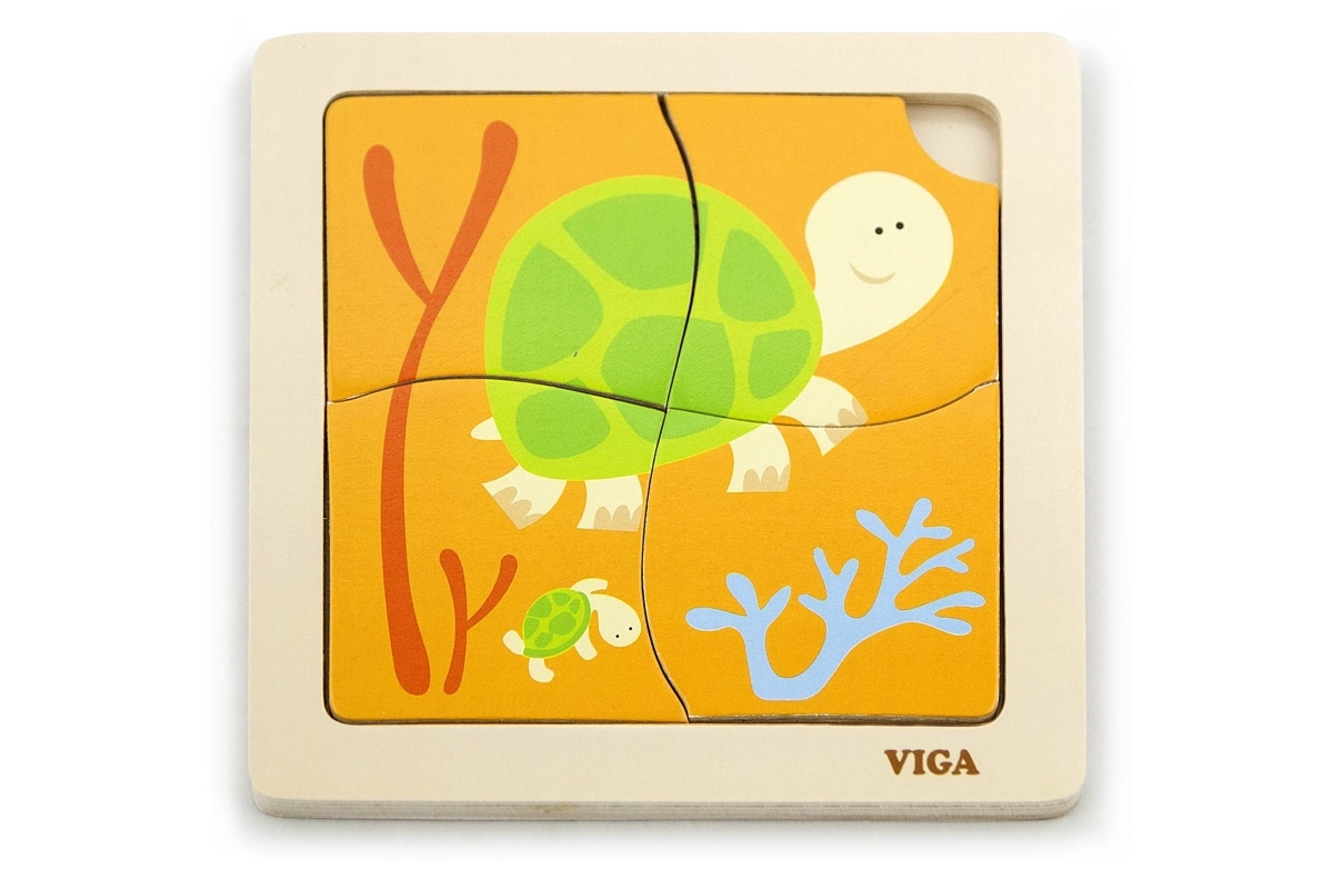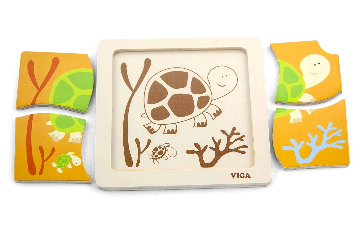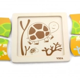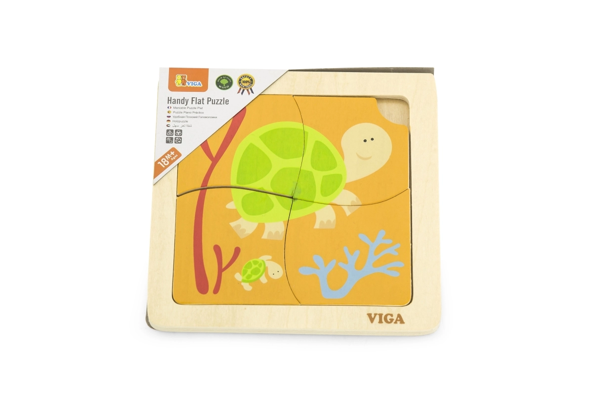Le puzzle en bois avec petite tortue est conçu pour les enfants dès 18 mois. Il se compose de quatre grandes pièces qui s'insèrent facilement dans le cadre en bois ou peuvent être assemblées séparément. Chaque pièce est richement colorée et offre une manière unique de développer l'imagination spatiale des enfants et la coordination œil-main.