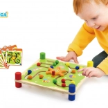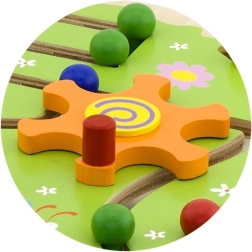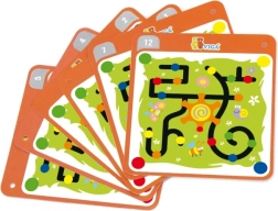 Le jeu Trop et Suivez est conçu pour développer la motricité fine et la coordination des mains et des yeux. Les enfants sont motivés à placer les chevilles dans les bonnes positions sur la planche, selon les six motifs de cartes fournis.