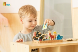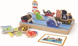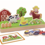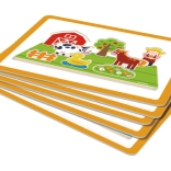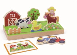 Ce jeu éducatif et amusant aide les enfants à comprendre les relations spatiales et soutient leur développement cognitif. Les enfants peuvent composer différentes scènes sur une base multicouche qui offre des aventures à la ferme et en mer.