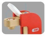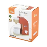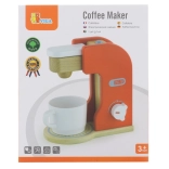 Cafetière rouge avec des accents en bois naturel qui imitent un véritable appareil et offrent une expérience de jeu ludique.